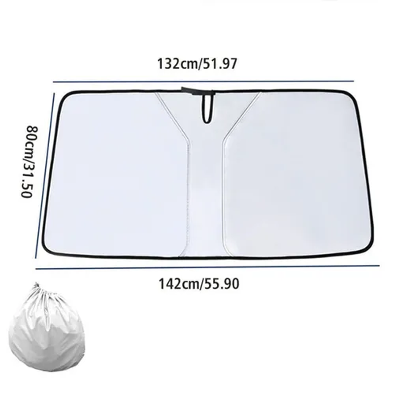 - The windshield sunshade is easy to use. Simply slide the sunshade over the dashboard and store it in the included travel bag when not in use.